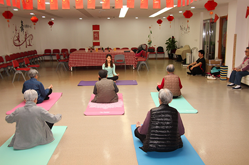 bat365正版唯一官网朝来老年公寓为长者邀请专业的瑜伽老师现场授课,“长者瑜伽”量身定制,动静之间身心放松。