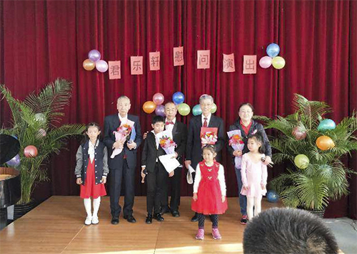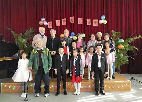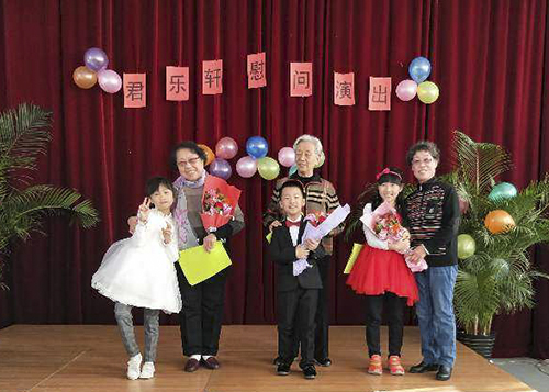 欢乐的时光总是短暂的,君乐轩钢琴培训中心慰问演出结束后,长者们和小朋友们一起合影留念。
