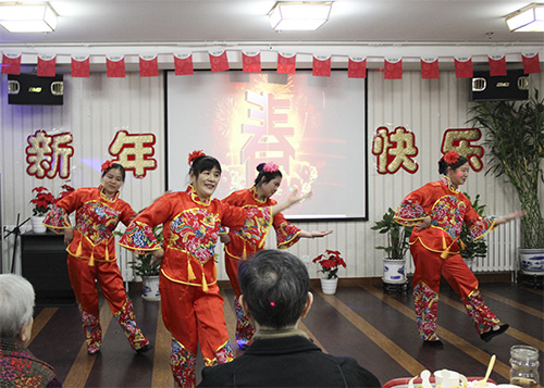 能歌善舞的护理大姐也为爷爷奶奶们表演了年意浓浓的节目