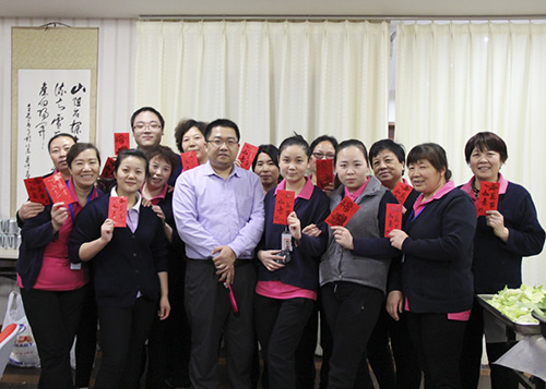 为了和大家一起过除夕,郝院长和总公司赵总在除夕当天也特地过来,来看望我们的员工和长者,给大家送祝福。