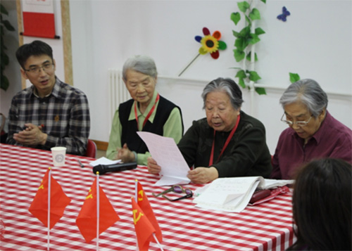 参观公寓后年轻的党员和老党员们围坐在一起,先由年轻一代的党员讲述她们对于党的认识,然后大家从爷爷奶奶们的讲述中了解他们那个年代的生活,以及他们年代关于党的故事,让大家从中受益颇多,并感受到到现在幸福生活的来之不易。