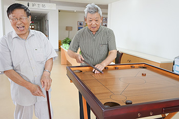 康乐球比赛更多的是轻松与欢乐,长者们带着笑脸找回了年轻时打康乐球的感觉。整个比赛现场充满了欢声笑语。