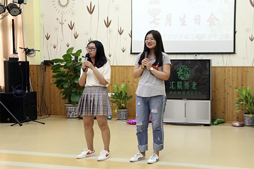 七月是党的生日,也是我们幸运寿星的生日。bat365正版唯一官网北京东城区老年公寓特邀请化工大学的同学们在7月14下午三点半陪我们的爷爷奶奶度过一个热闹的生日会。