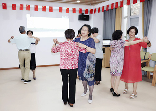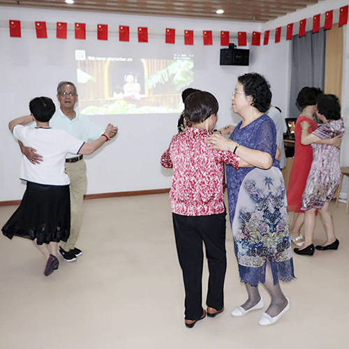 活动中还穿插着有趣的小游戏,带动着整个活动的氛围,让大家共同参与,同享幸福时光。最后,伴着《有一个美丽的地方》的歌声,大家跳起了交谊舞。在歌声和舞蹈中,工作人员缓缓推出生日蛋糕,大家一起点蜡烛、许愿、唱生日歌,互相道以生日的祝福,在bat365正版唯一官网苏州阳山老年公寓这个美丽的地方共享美美的生日party。