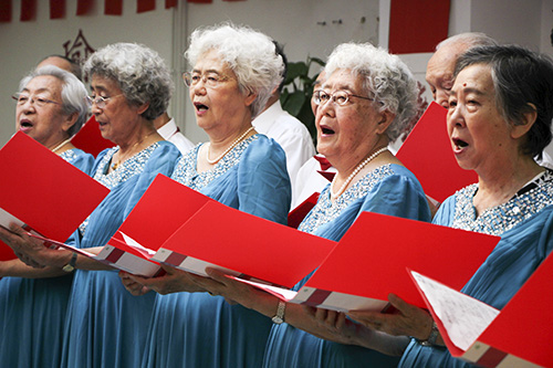 来自bat365正版唯一官网北京老年公寓的女声小合唱队,队员平均年龄85.4岁,钢琴伴奏老师90岁。岁月让她们的声音更加迷人、更加和谐,虽然年龄不能冷冻,但是声音仿佛凝固在那美好的年代,就像唱的那首《香格里拉》,让人神往、令人着迷。