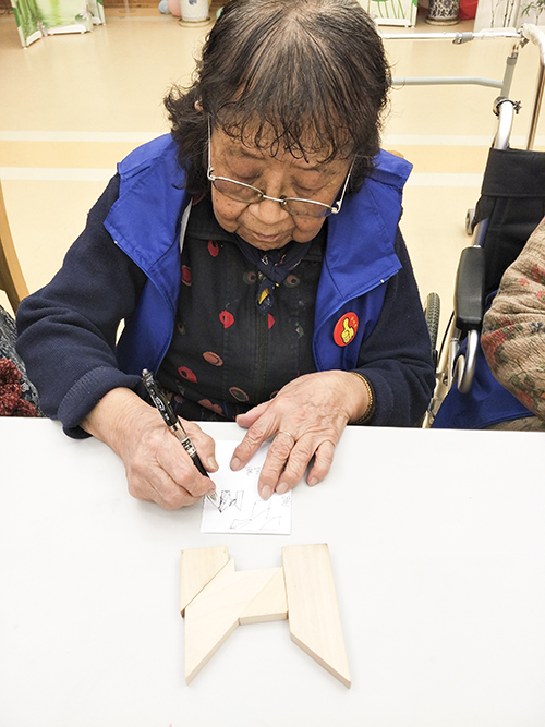整个课程分为5款专业乐龄游戏,每次活动由一款专业游戏加一款活化大脑的手指操组成。为了达到有效的脑训练,我们一直让长辈在愉快的环境下,无意识的学习新技能。针对有些长者不愿意学习新事物、不喜欢被指挥的问题,我们有针对性的设计了一系列教材,陪伴长者一起进行游戏,让长者在各种游戏中取得成功经验,让长者喜欢上游戏,让新的技能写入大脑,有助于提升人际关系及降低失智的可能性。乐龄课堂从开课到现在已经成为最受长者欢迎的课程,参与此次活动的12位长者平均年龄86.1岁,90岁以上的有4位,年龄最长的是96岁的杨奶奶,她也是本次中央电视台《长寿时代》节目组采访的长者之一。