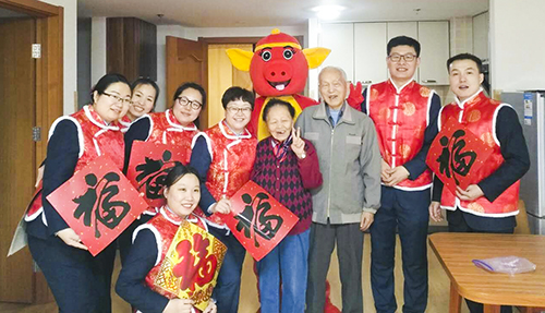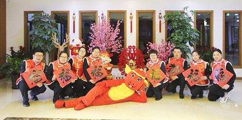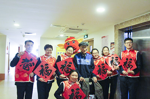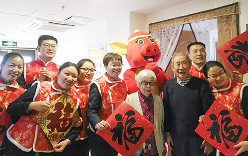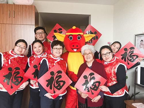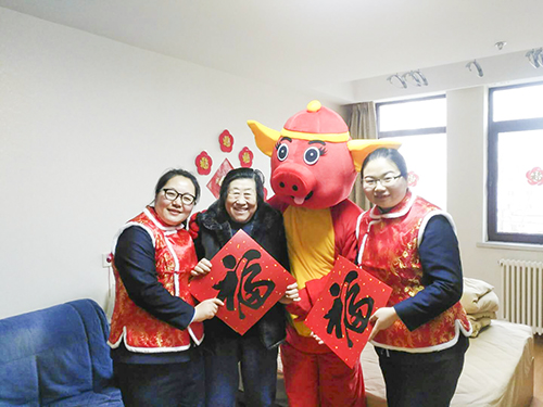 身着喜庆的节日服装,手持福字,公寓院长及各部门代表为长者送去最贴心的祝福、最温暖的问候,恭祝长者们新年快乐,身体健康,万事如意!