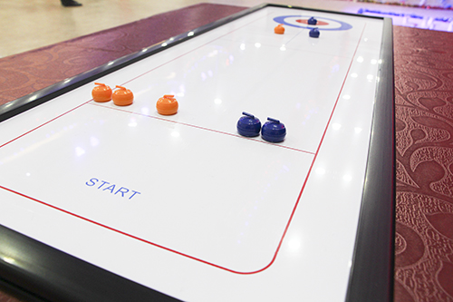 桌上冰壶是一款老少兼宜并具备趣味性的运动,长者们相互比赛,比一比谁得到的分数多。