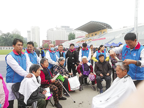 活动现场气氛热烈,人潮不息。公寓为北航的长者们提供了全面专业的养老咨询服务和理发,按摩等生活服务。长者们纷纷排队等候志愿者们的服务,其间不停地夸赞技师的手艺精湛:“师傅的手艺真好!按得特别舒服!”