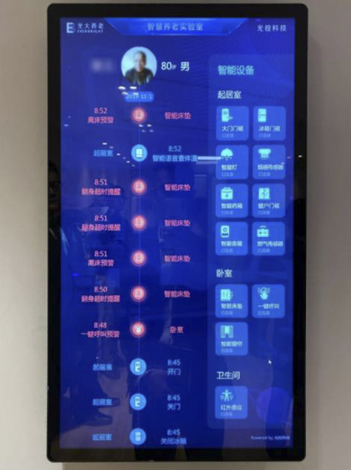 当天,李晓鹏、吴利军、蔡允革、付万军一行还参观了光大养老智慧养老实验室。通过智能设备,构建云服务平台、物联网智护平台和AI大数据三大技术平台,可全天候监测入住老人的健康数据、屋内设备运转情况、冰箱开关情况等,提供健康服务、安全服务、护理服务、辅助服务四类核心养老服务,用有温度的科技守护老人的健康安全。