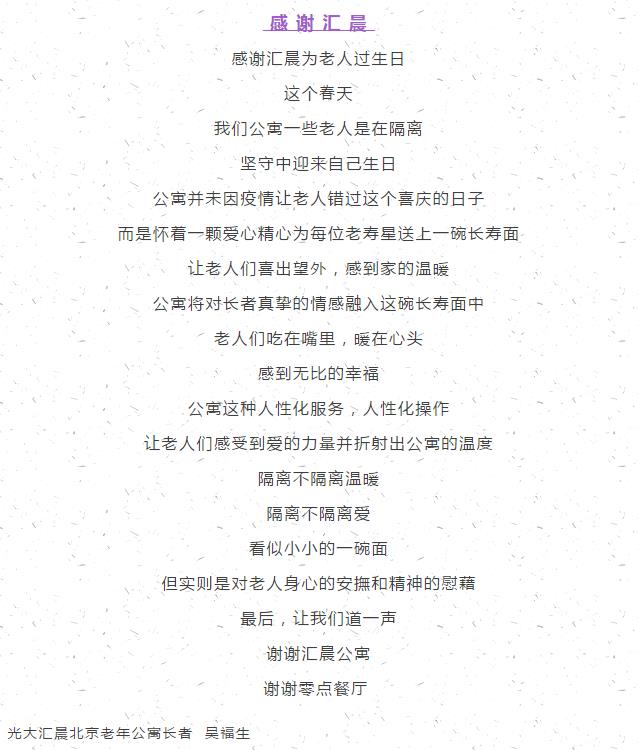 公寓的温暖举动感动长者,一段段感言让我们觉得一切付出都值得。