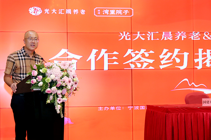 宁波国建房地产开发有限公司总经理金鸿涛对本次康养合作项目进行了详细介绍。