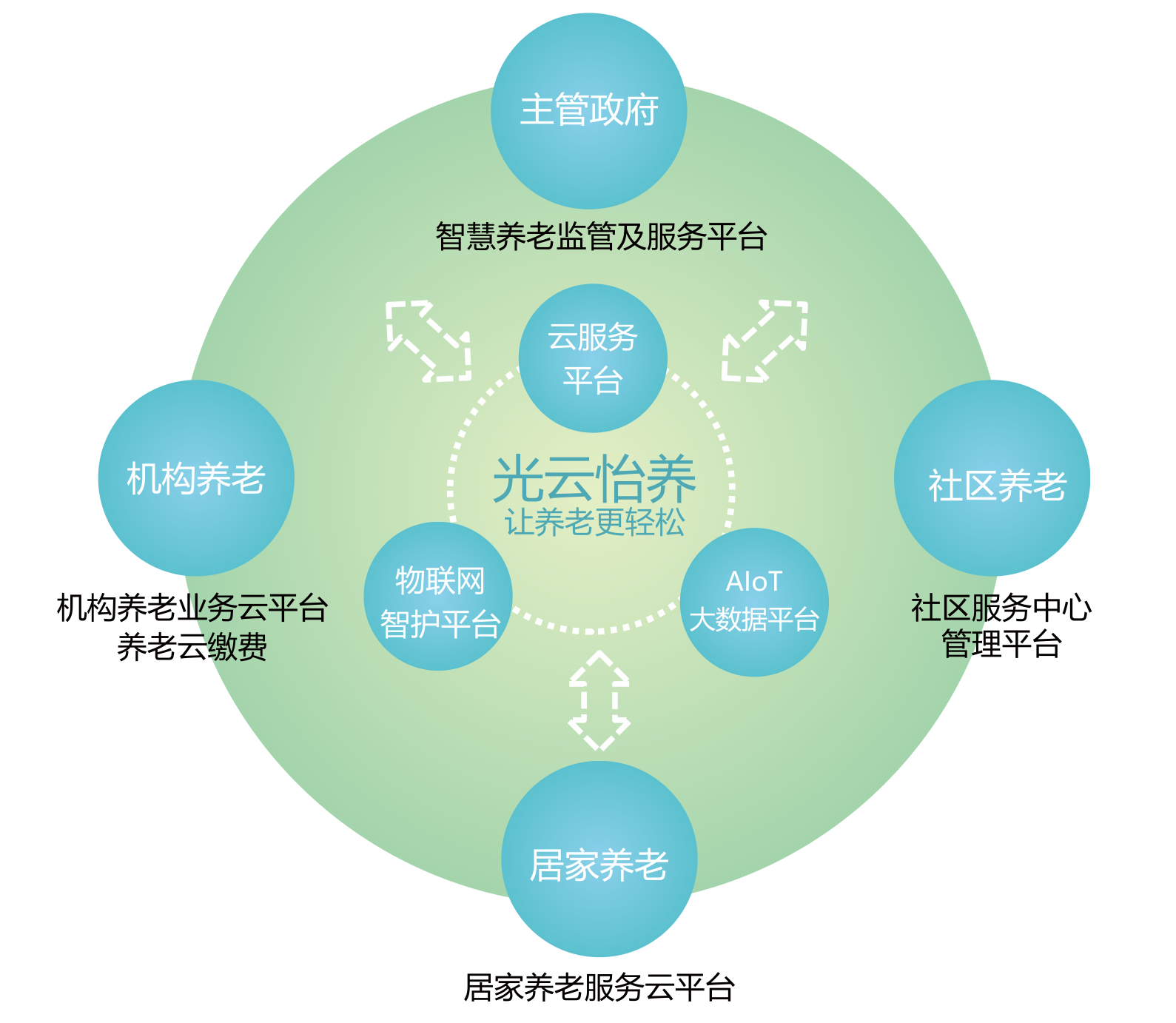 “光云怡养”系统包含三大技术核心平台:即云服务平台、物联网智护平台和大数据平台。