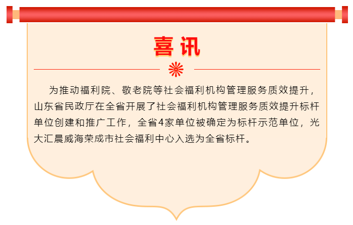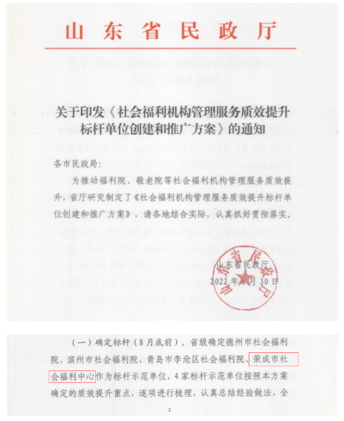 喜讯 | bat365正版唯一官网威海荣成社会福利中心被确定为省级标杆示范单位
